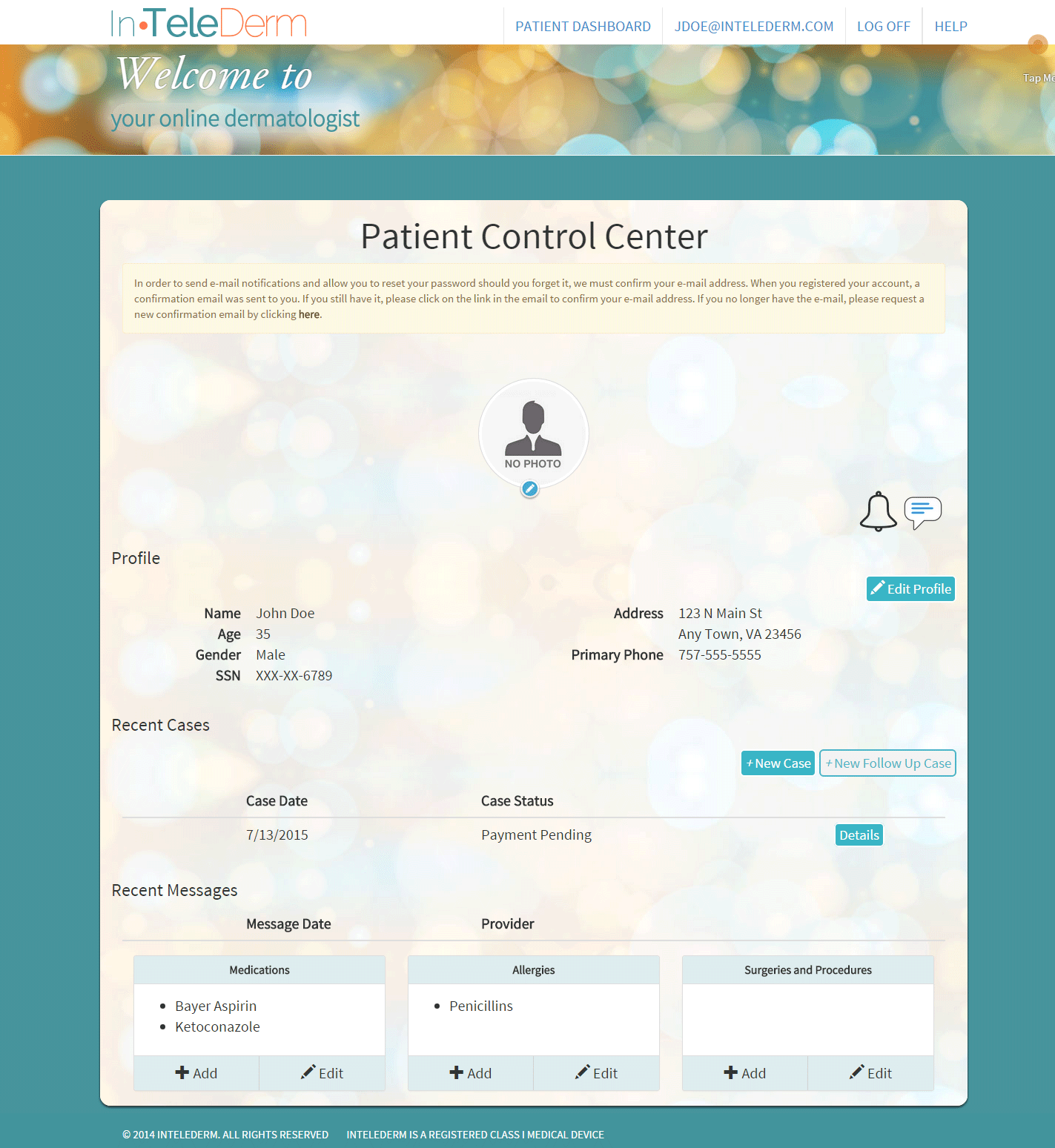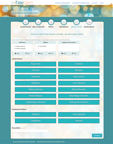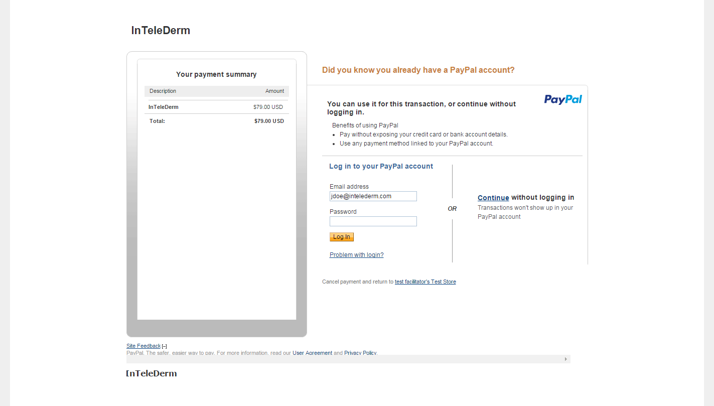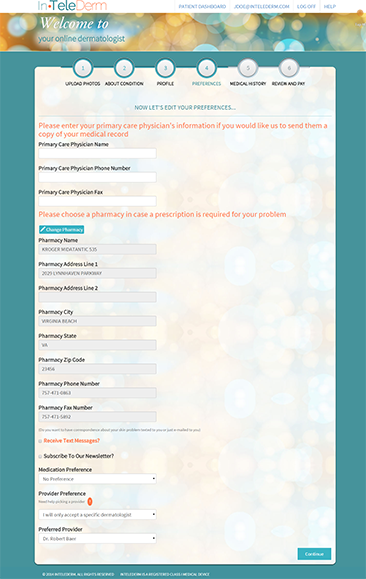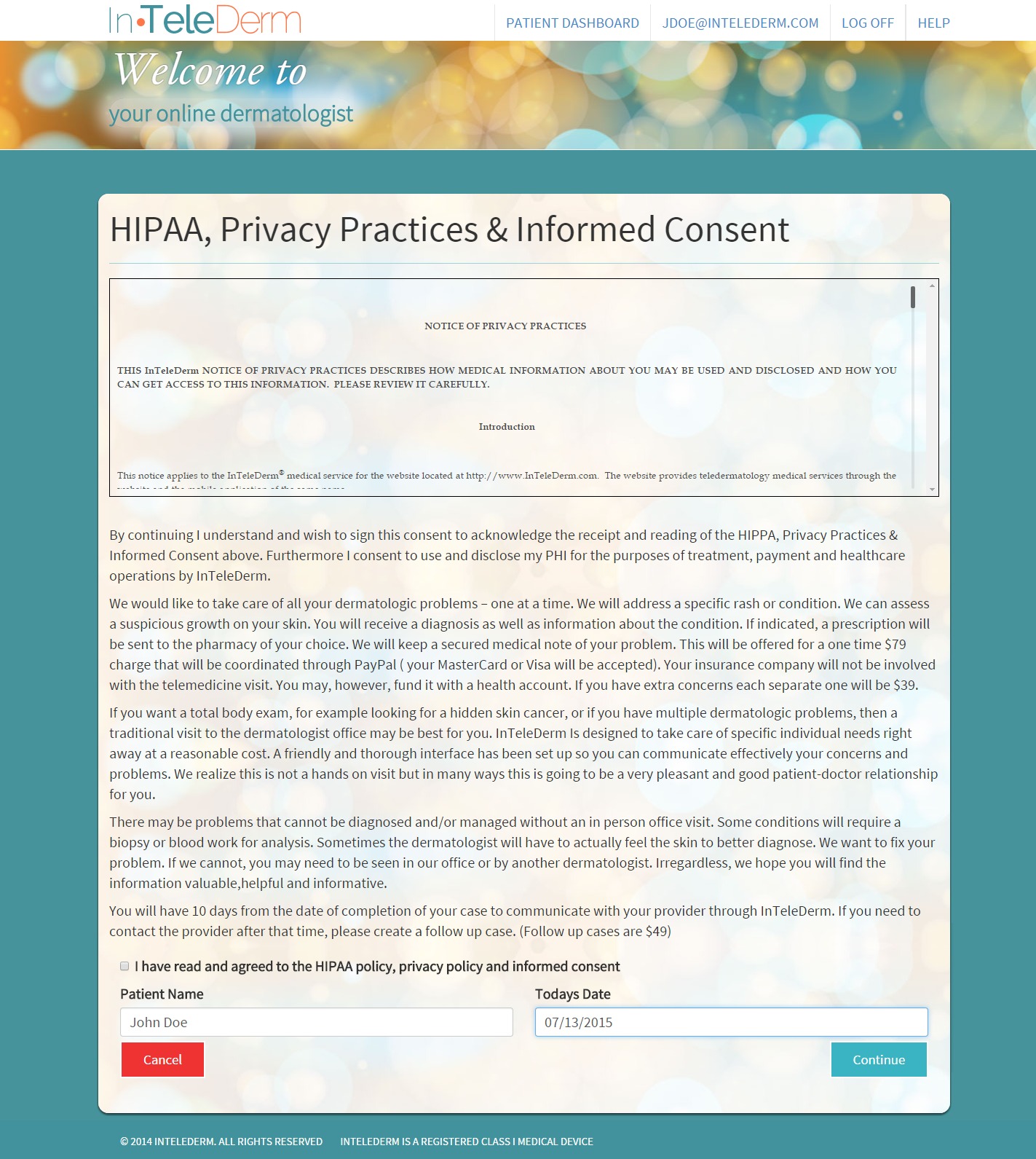 Once you've entered all of your information, click on the pay button. You will then be taken back to your patient dashboard on InTeleDerm.