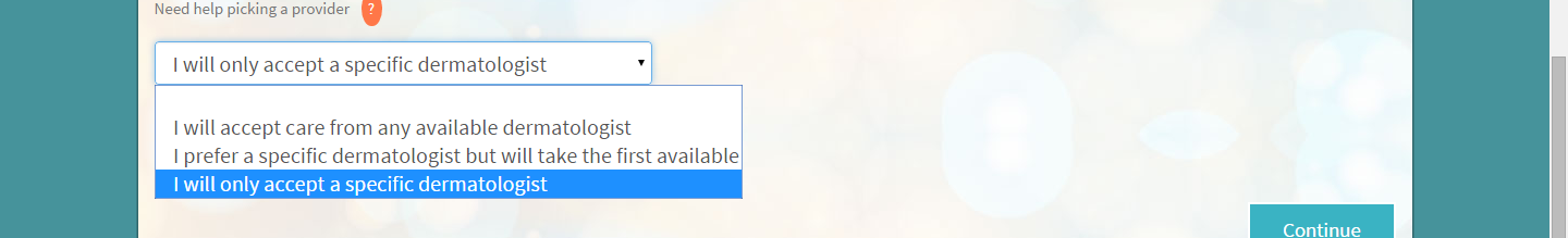 Next you need to choose your provider preference. Unless you are following up with a specific provider, it is recommended to choose the first available provider. This will allow you to get the fastest results.
