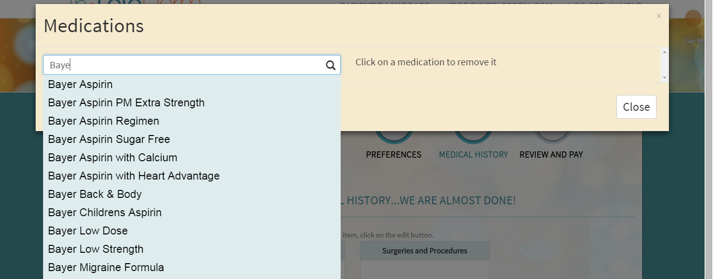 After you have selected your preferences, you next need to fill out your medical history. This includes any medication you are taking, any drug allergies you may have and any surgeries you've had in the past. You should also select any items you or your family have had in the past.