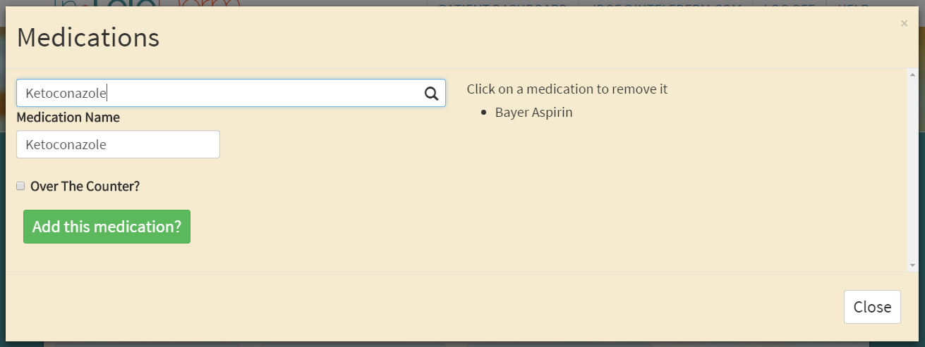 You can then choose whether the medication is taken over the counter or not. If you need to remove a medication, either because it is an error, or you are no longer taking the mediation, just click on it.